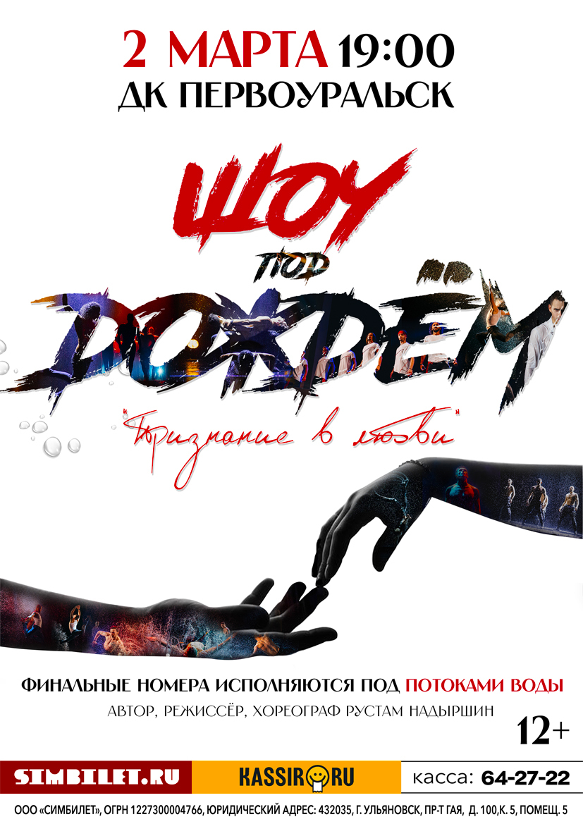 Шоу дополнено интерактивом со зрителем, что привносит в постановку еще больше жизни и юмора. Санкт-Петербургский театр танца «Шоу под дождем» гарантирует, что зрители окунутся в бурю эмоций, и почувствуют безграничную силу танца. В финале номера исполняются под потоками воды!