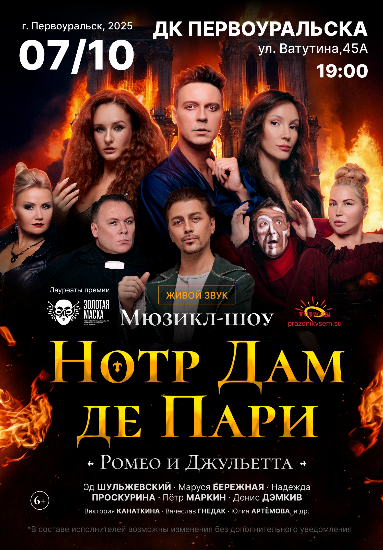 Состав*: Маруся Бережная/Надежда Проскурина, Эд Шульжевский, Александр Постоленко/Денис Дэмкив, Петр Маркин/Алексей Лосихин, Вячеслав Гнедак, Юлия Артемова, Виктория Канаткина и другие ведущие артисты самых известных, успешных и легендарных мюзиклов.